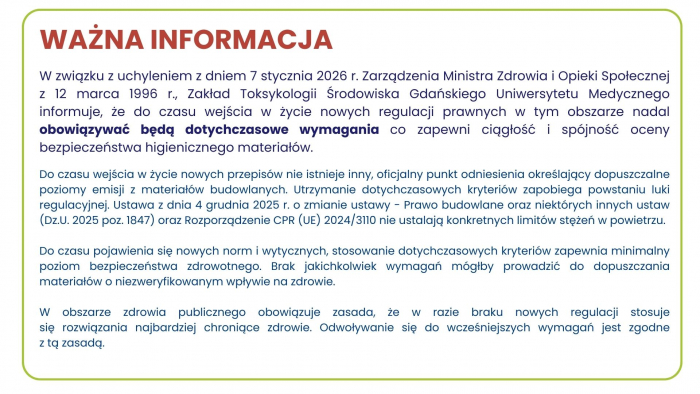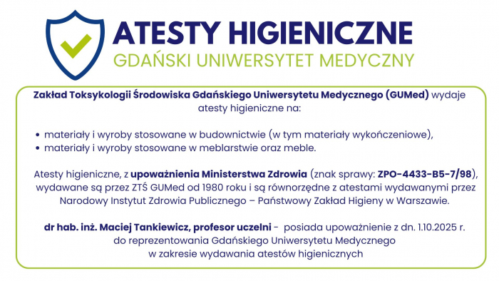 Dokumenty, materiały wymagane do wydania Atestu Higienicznego zawarte są we wniosku zlecenia (WNIOSEK (plik doc, 57 kB)).