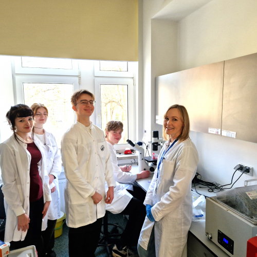 Kick off Meeting rozpoczynający projekt Horyzont GreenNanoBone, 30.06-01.07.2025 fot. P. Sudara |  Kick off Meeting rozpoczynający projekt Horyzont GreenNanoBone, 30.06-01.07.2025 fot. P. Sudara |  Obrona pracy magisterskiej Weroniki Kucięby, 07.2025 |  Zajęcia w ramach studiów podyplomowych Trychologia Kliniczna, 04.2025 |